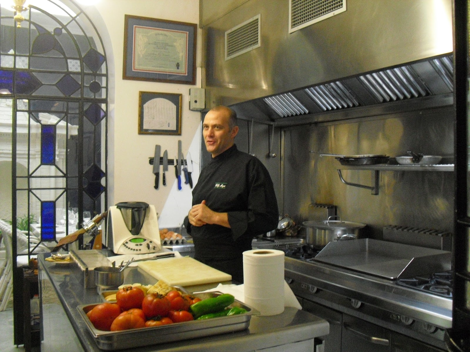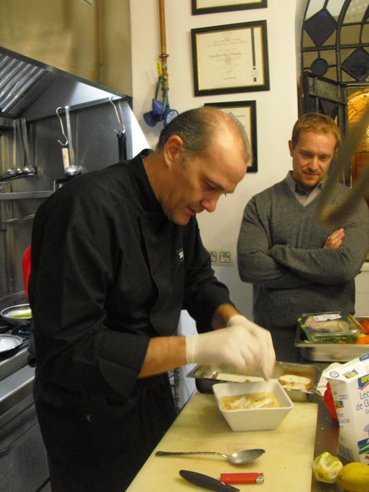 Willy gives the classes in the kitchen at his restaurant and in the first photo below, which was taken last Saturday, he is giving an introduction to the dishes his students are going to learn to prepare.