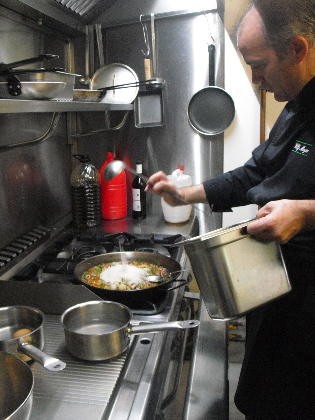 In the next photo below, Willy is adding rice to what will become a seafood paella. In the photo below that, he can be seen preparing “torrijas”, a dish similar to French toast but made with fresh bread.