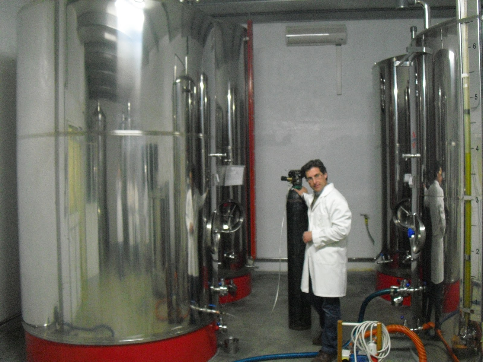 As olive oil is not being made at the moment, Juan Antonio showed us a video of the extraction process. The olives are crushed to form a paste and this paste is then centrifuged to separate the olive oil from the solid material and from water. The olive oil which at this mill is all extra virgin is then stored in stainless tanks at a constant temperature with a layer of nitrogen above the oil. This helps to stop the olive oil from oxidising. Below is a photo of the stainless steel tanks.