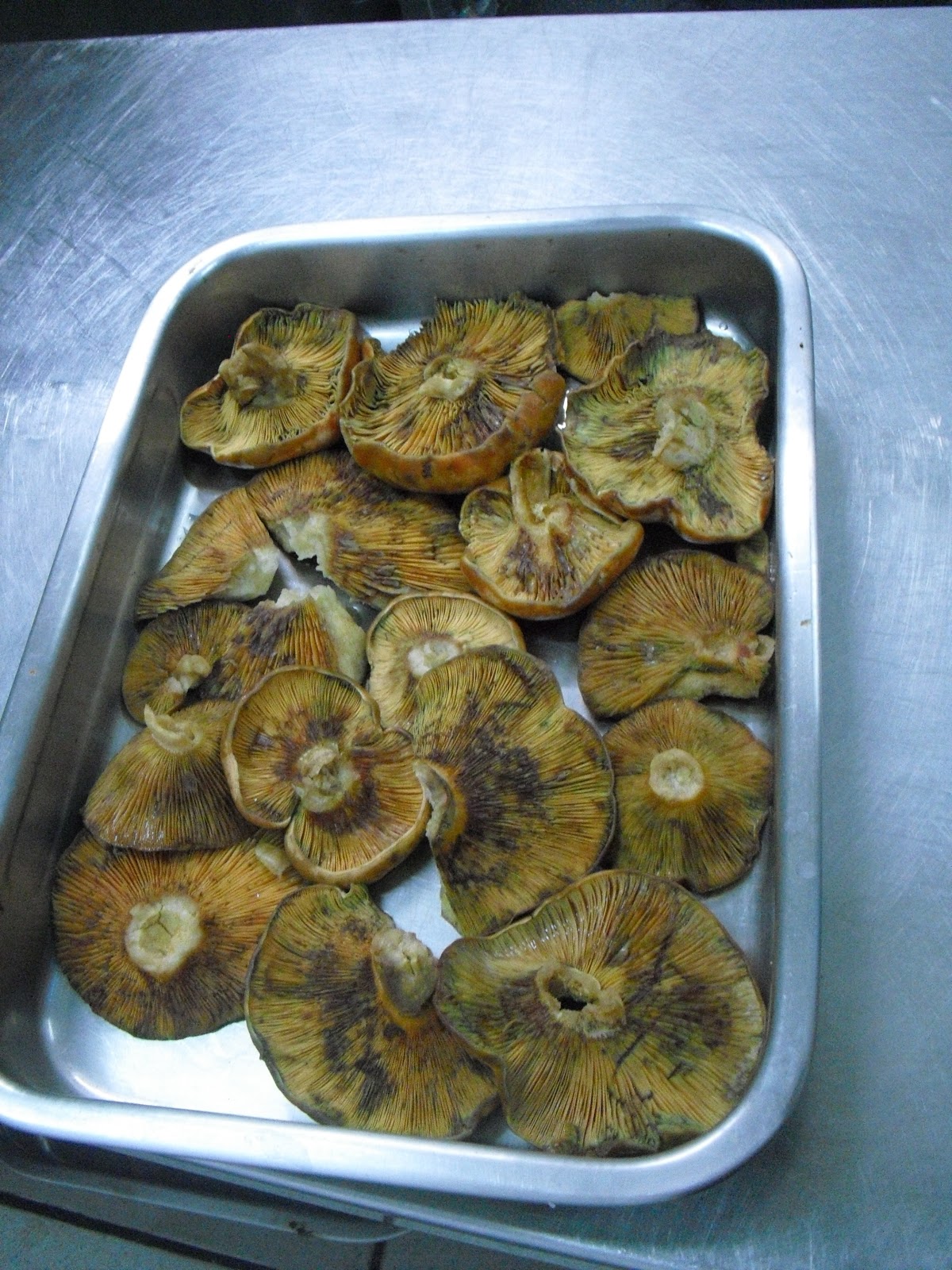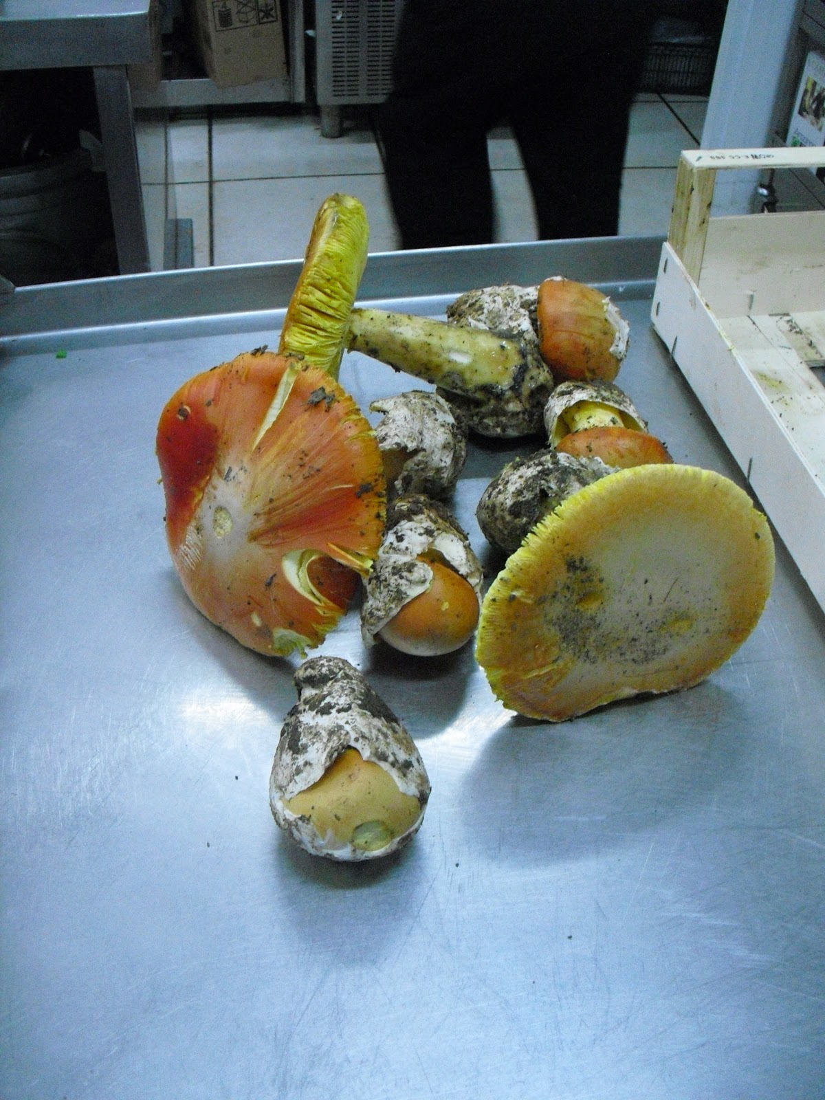 After the ham factory visit, we headed to one of my usual haunts for lunch. Thanks to all the rain that we have been having, we were able to taste some wild mushrooms. We tasted three different types: Boletus aereus, Amanita caesarea (Caesar’s mushroom) and Lactarius deliciosus (Saffron milk cap). The photos below were taken in the kitchen at the restaurant and the mushrooms are shown in the same order as they are mentioned in the previous sentence.