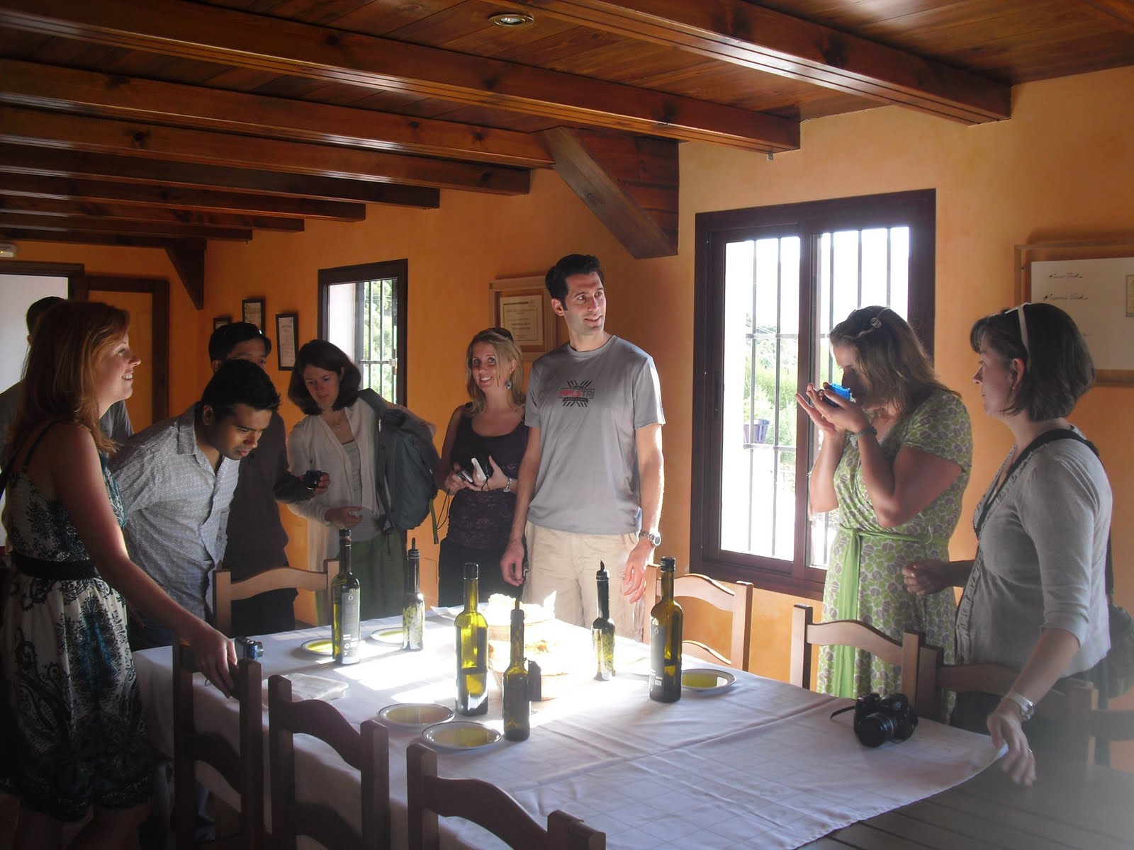 In the next photo the group are tasting two olive oils, the first a single varietal manzanilla oil and the second a coupage of manzanilla and lechin.
