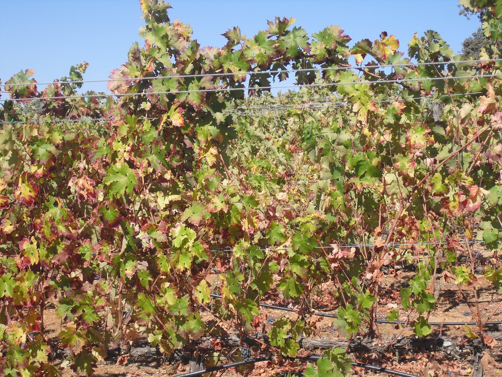 Leaving the mill we set off for the the winery, where just a few days before the last grapes had been picked. Due to the hot weather at the end of August and a lot of September, together with the prevalence of the hot levant wind, the vine foliage looks like it normally would at the end of November, not early October. This can be seen in the photo below.