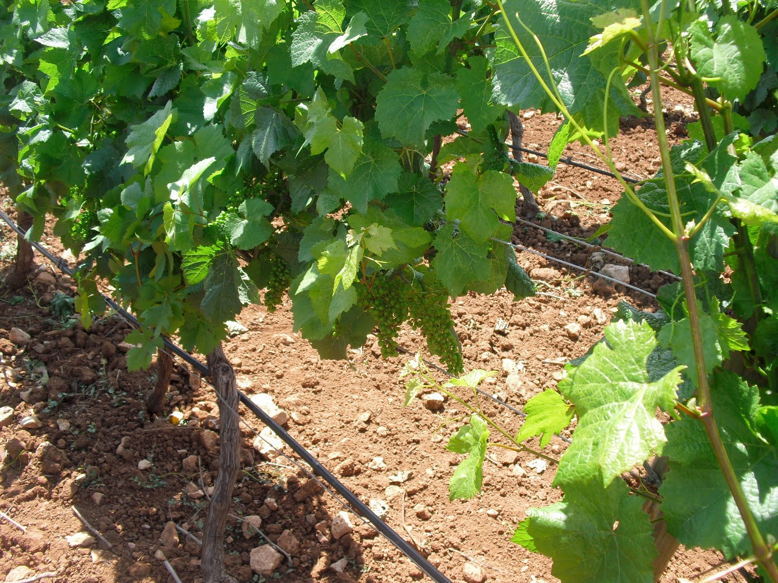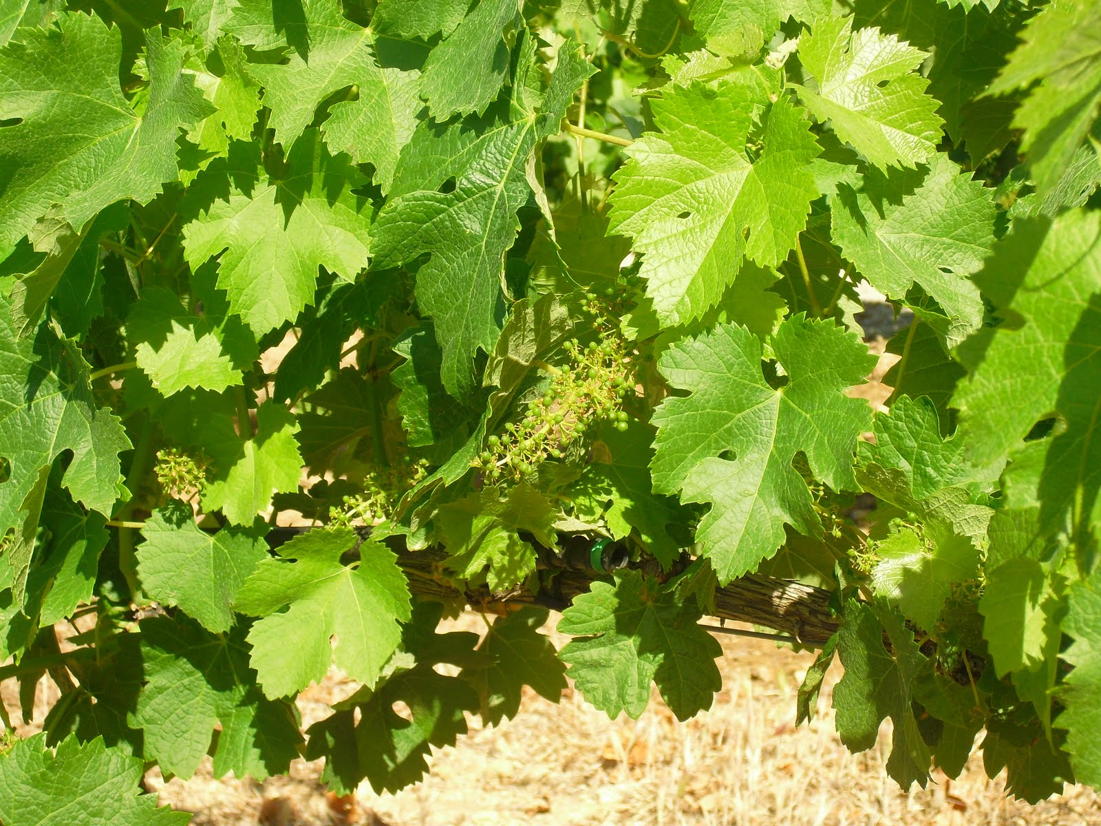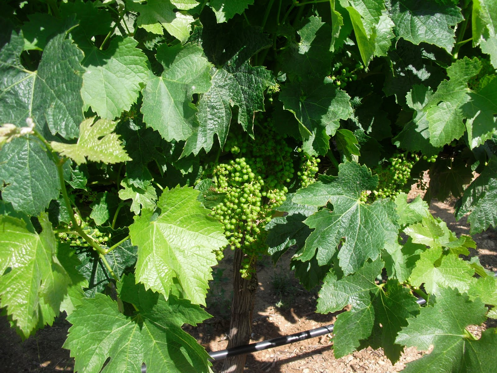 The second photograph is of Cabernet Sauvignon grapes. This is a grape which develops quite a bit later than Merlot and you can see on the individual bunches some grapes are quite visible whilst others are only just starting to form. At the vineyard where the first two photographs were taken there is almost a two month difference in the harvesting of the two grape varieties