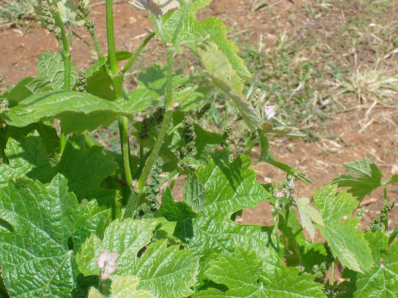 The vineyard near Ronda is at an altitude of around 850 metres whilst the one in Arcos is not much above 200m. On arriving at the vineyard it was obvious straight away that growth of the vines was quite a bit behind that of the Arcos vinyard. The most advanced vines were the Merlot ones with very small grape bunches already visible as can be seen in the photo below.