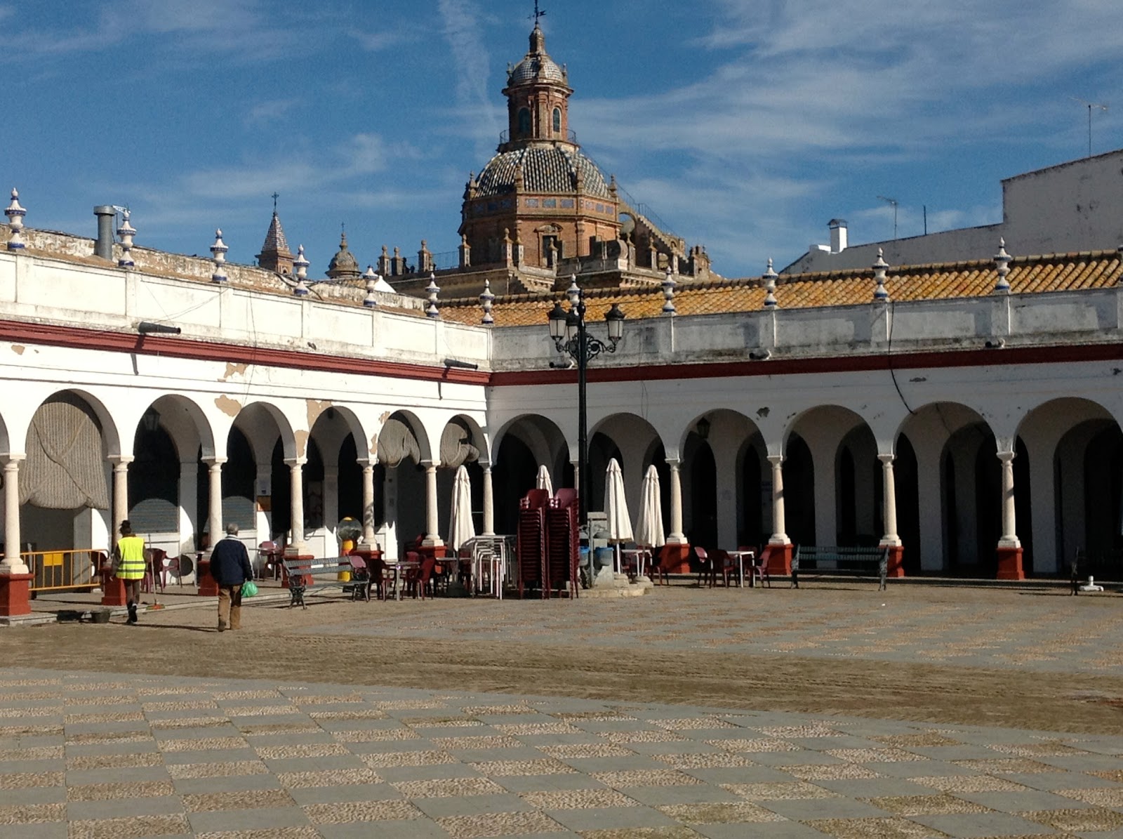 Yesterday I made a visit to a distillery that is situated just outside the town of Carmona, 33 kilometres from Seville. I am thinking of setting up a half-day tour to the place. The distillery was founded in 1880 by a man from the Basque Country, Mr. Izaguirre. He had come to southern Spain a few years earlier escaping fron the third Carlist war. The destillery is built over the ruins of some Roman baths and includes the remains of an old Arabic mill. The baths and mill took advantage of  a spring which was the reason for setting up the distillery in the same location. The photo below shows some of the remains of the Arabic mill.