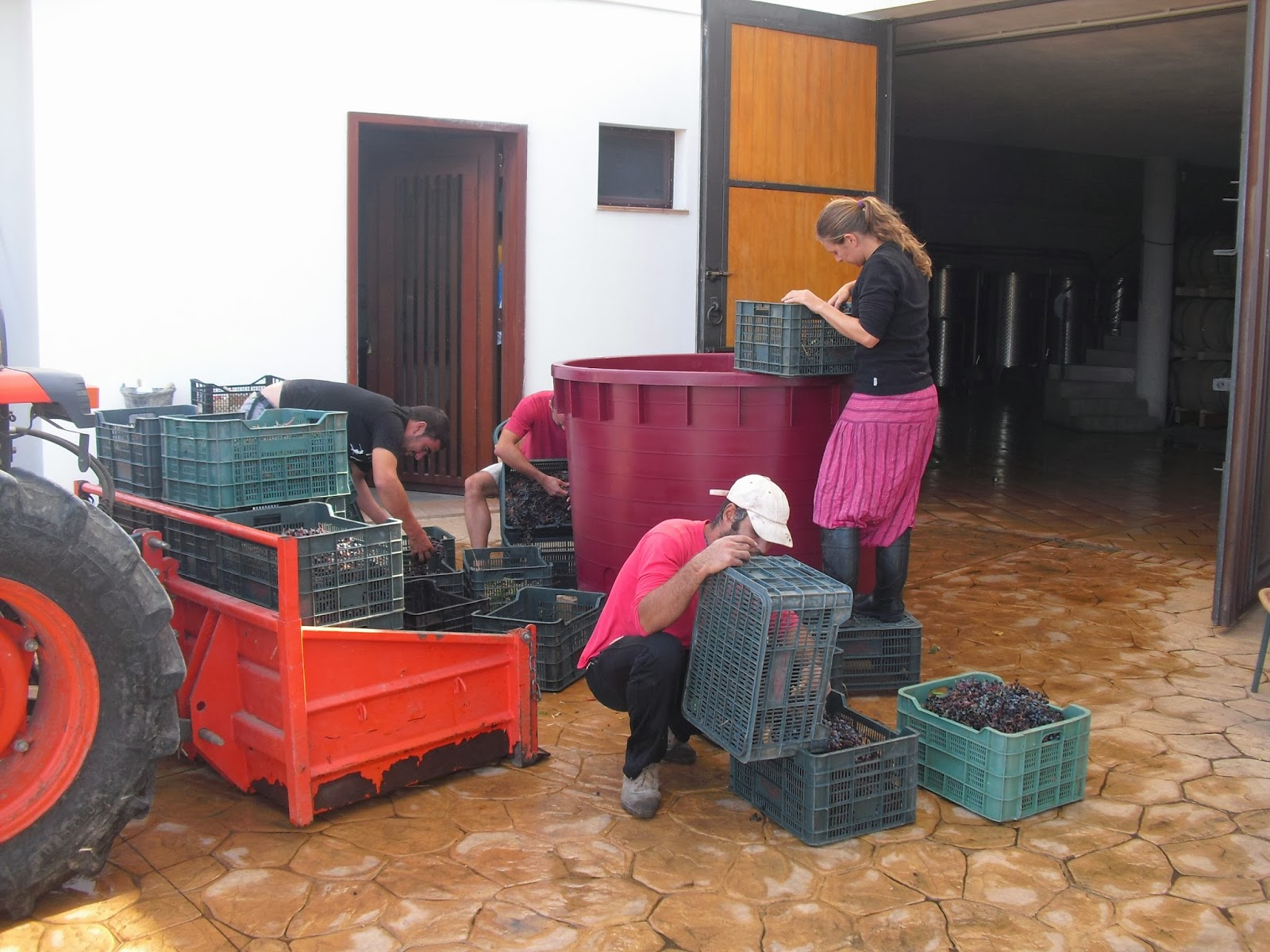 One of the tours I ran last week was  a wine tour to the Ronda area with a group of 9 Australians. At both the wineries we visited wine production was in full swing. In the first photo below, you can see boxes of grapes that have just been brought in from the vineyard.