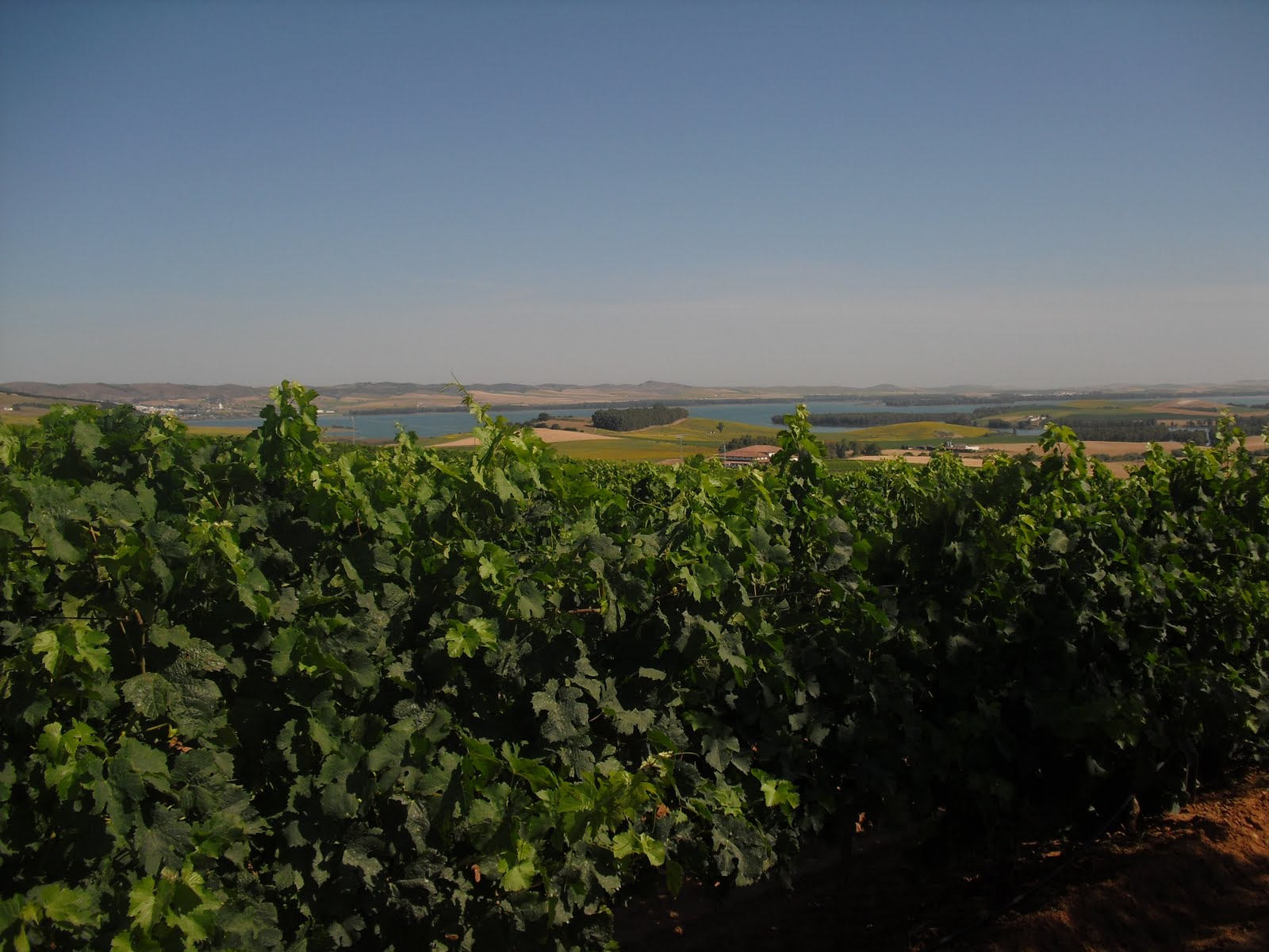 The next photo is a view over the tops of the vines to a nearby reservoir.