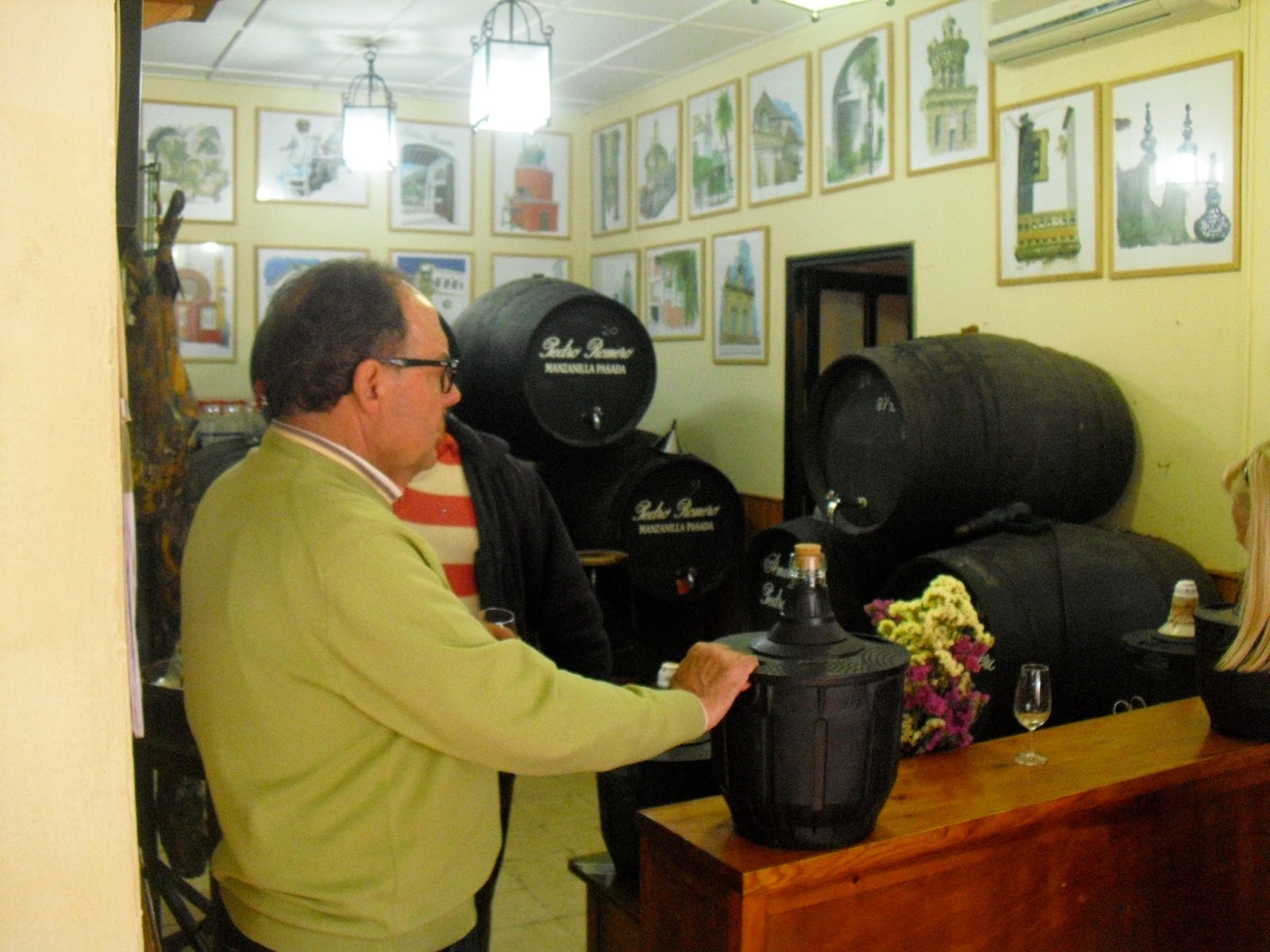 As usual there were some customers who had come to buy wine. In the photo below Nieves has just filled a bottle with 2 litres of amontillado.